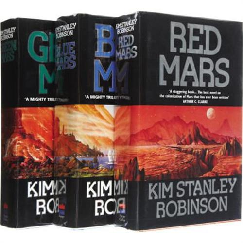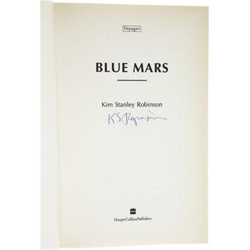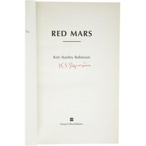 <B>Kim Stanley Robinson: The Mars Trilogy Signed in Each Book's Color-Specific Ink,</B></I> including:<BR><B><I>Red Mars</B></I></B></I> (London: Harper Collins, 1992), first UK edition, 501 pages, red cloth with silver lettering on spine, 8vo (6.25" x 9.5"), dust jacket. Signed "<I>KS Robinson</B></I>" in red ink on the title page.<BR><B><I>Green Mars</B></I></B></I> (London: Harper Collins, 1993), first UK edition, 571 pages, black cloth with gilt lettering on spine, 8vo (6.25" x 9.5"), dust jacket. Signed "<I>KS Robinson</B></I>" in green ink on the title page.<BR><B><I>Blue Mars</B></I></B></I> (London: Harper Collins, 1996), first UK edition, 616 pages, blue cloth with silver lettering on spine, 8vo (6.25" x 9.5"), dust jacket. Signed "<I>KS Robinson</B></I>" in blue ink on the title page. All books in fine condition. A rare signed collection of Robinson's multi-award winning masterpiece, each signed in the color of the specific book's title.<BR><BR><b>Shipping:</b> Books & Catalogs (<a target="_blank" href="http://www.heritageauctions.com/common/shipping.php">view shipping information</a>)