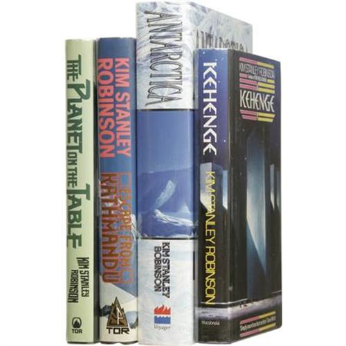 <B>Kim Stanley Robinson: Four Signed First Editions.</B></I> Includes the following:<BR><B><I>The Planet on the Table.</B></I></B></I> (New York: Tor, 1986), first edition, 241 pages, green boards, 8vo, dust jacket. Condition (book/ dj): fine/ fine.<BR><B><I>Escape From Kathmandu.</B></I></B></I> (New York: Tor, 1989), first edition, 314 pages, black boards, 8vo, dust jacket. Condition (book/ dj): fine/ fine.<BR><B><I>Icehenge.</B></I></B></I> (London: Macdonald, 1986), first hardback edition, 262 pages, blue boards, 8vo, dust jacket. Condition (book/ dj): fine/ fine.<BR><B><I>Antarctica.</B></I></B></I> (London: Voyager (HarperCollins), 1997), first edition, 414 pages, white boards, 8vo, dust jacket. Condition (book/ dj): fine/ fine.<BR><BR><b>Shipping:</b> Books & Catalogs (<a target="_blank" href="http://www.heritageauctions.com/common/shipping.php">view shipping information</a>)