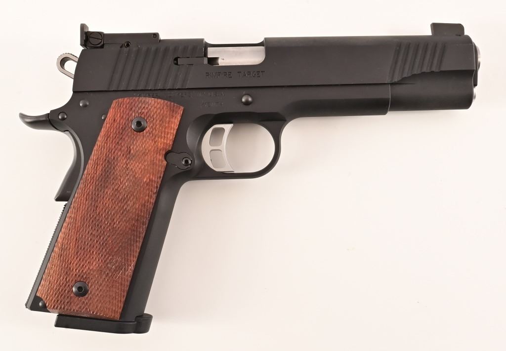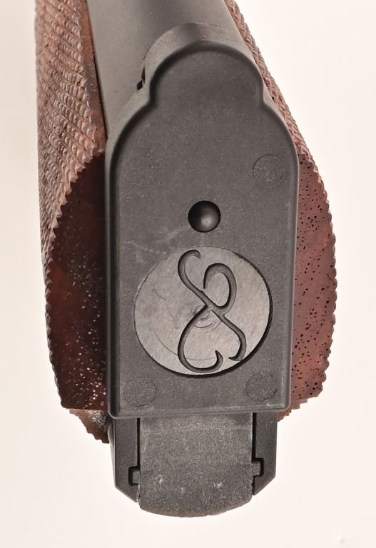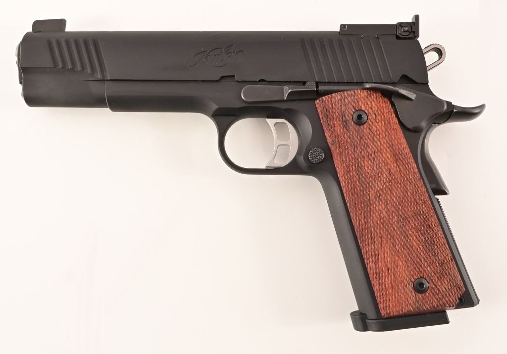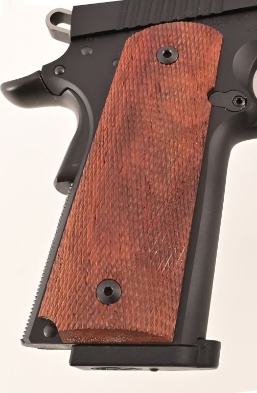 S/N K131174. Parkerized finish, diamond checkered wood grips.