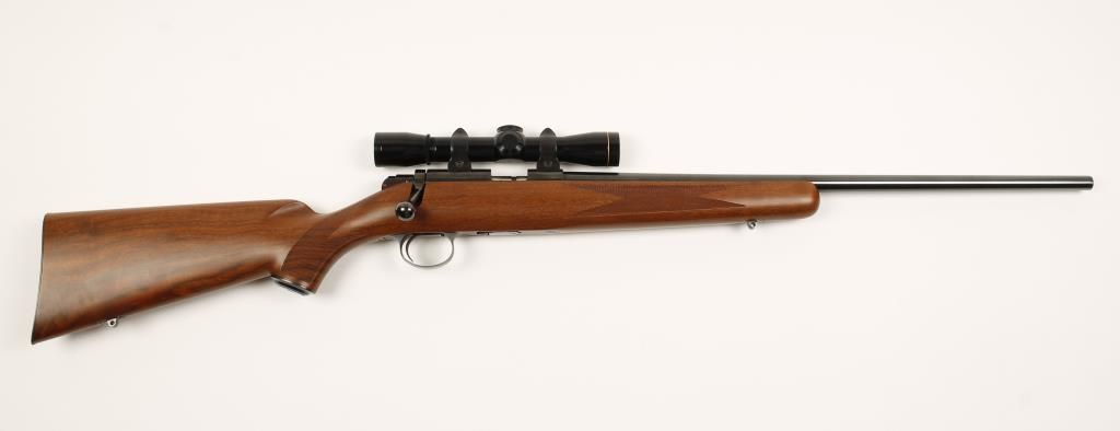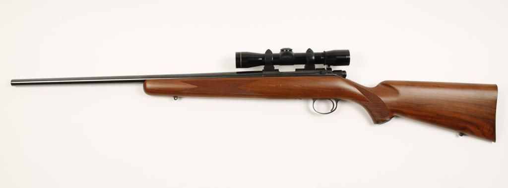High quality bolt action rimfire rifle with 22" barrel. Blued finish, checkered pistol grip walnut stock, detachable magazine, no sights and fitted with Leupold 4X RF Special scope. Very good bore and action. Includes 1 magazine. Condition: Excellent showing very little use. *Modern Firearm*