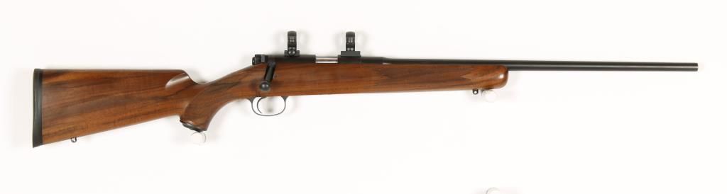 Bolt action rimfire sporting rifle with 22" barrel. Matte blue finish, checkered pistol grip, A grade Claro walnut stock, fully adjustable trigger, detachable magazine, no sights and fitted with scope rings. Excellent bore and action. Includes original box, manual and 1 magazine. Condition: Excellent *Modern Firearm*