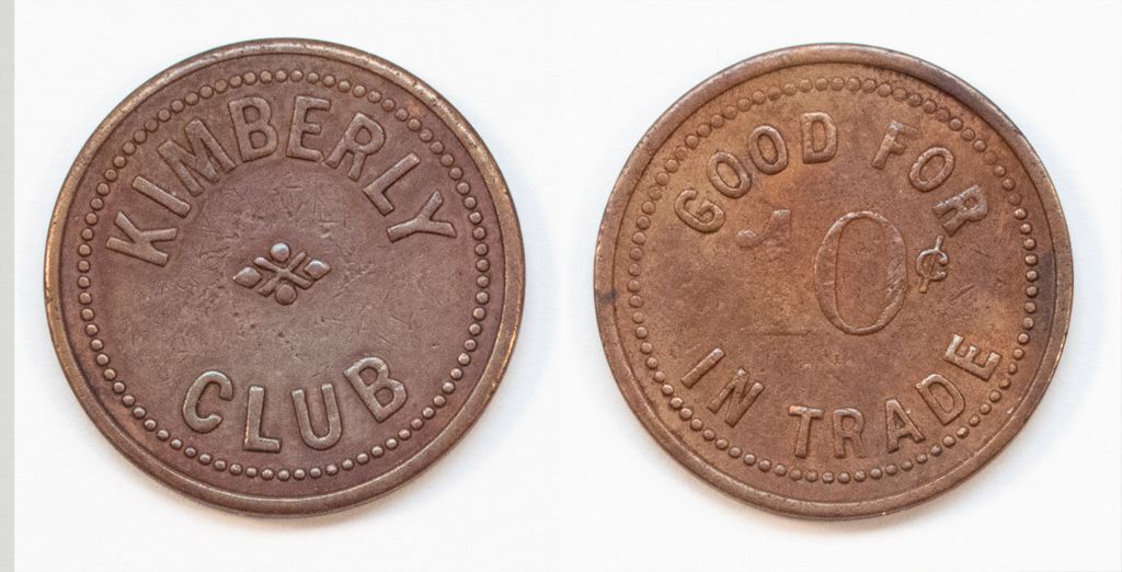 Brass 21 mm token; Good For/10 c/In Trade