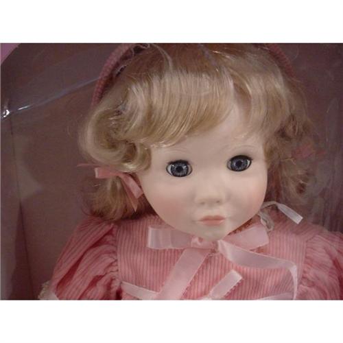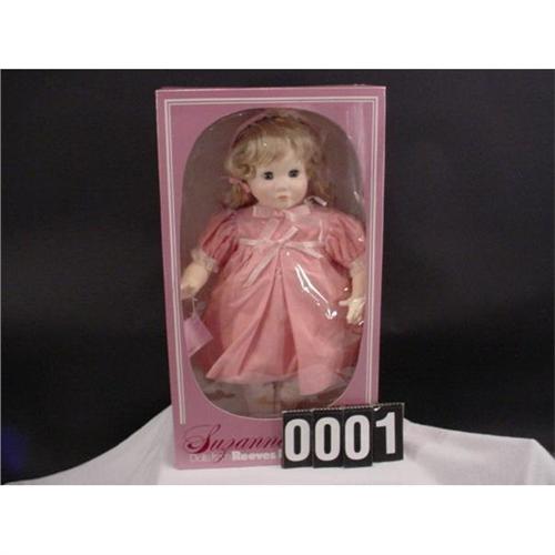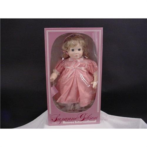 Reeves International Suzanne Gibson "Kimberly" doll #24856, 23" high cloth body, vinyl legs, arms, and head. It has blue sleep eyes, and sgd mark & imprinted Suzanne signature on back of neck. Copyright 1977. It comes complete & original in very fine condition with the original box (cello is loose).