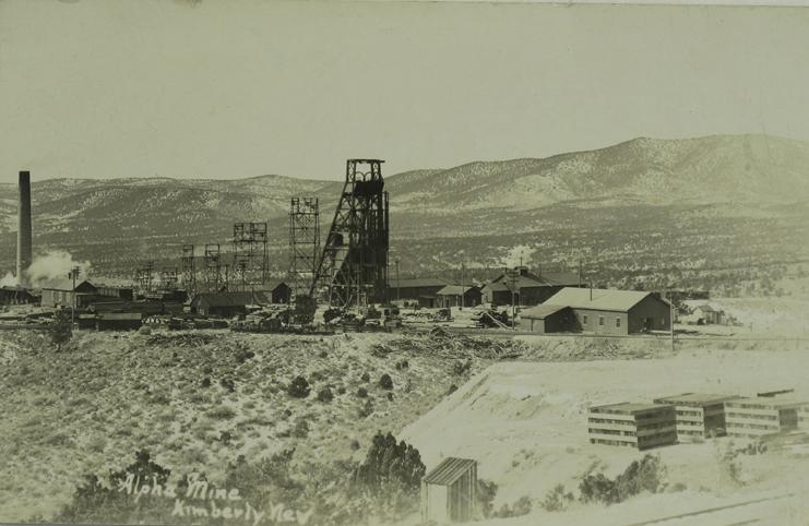 A single post card with a photo of the Alpha Mine in Kimberly, Nevada. Kimberly is located west of Ruth, Nevada in the rich copper district in the Egan Range. The post card is un-used and is a RPC card.