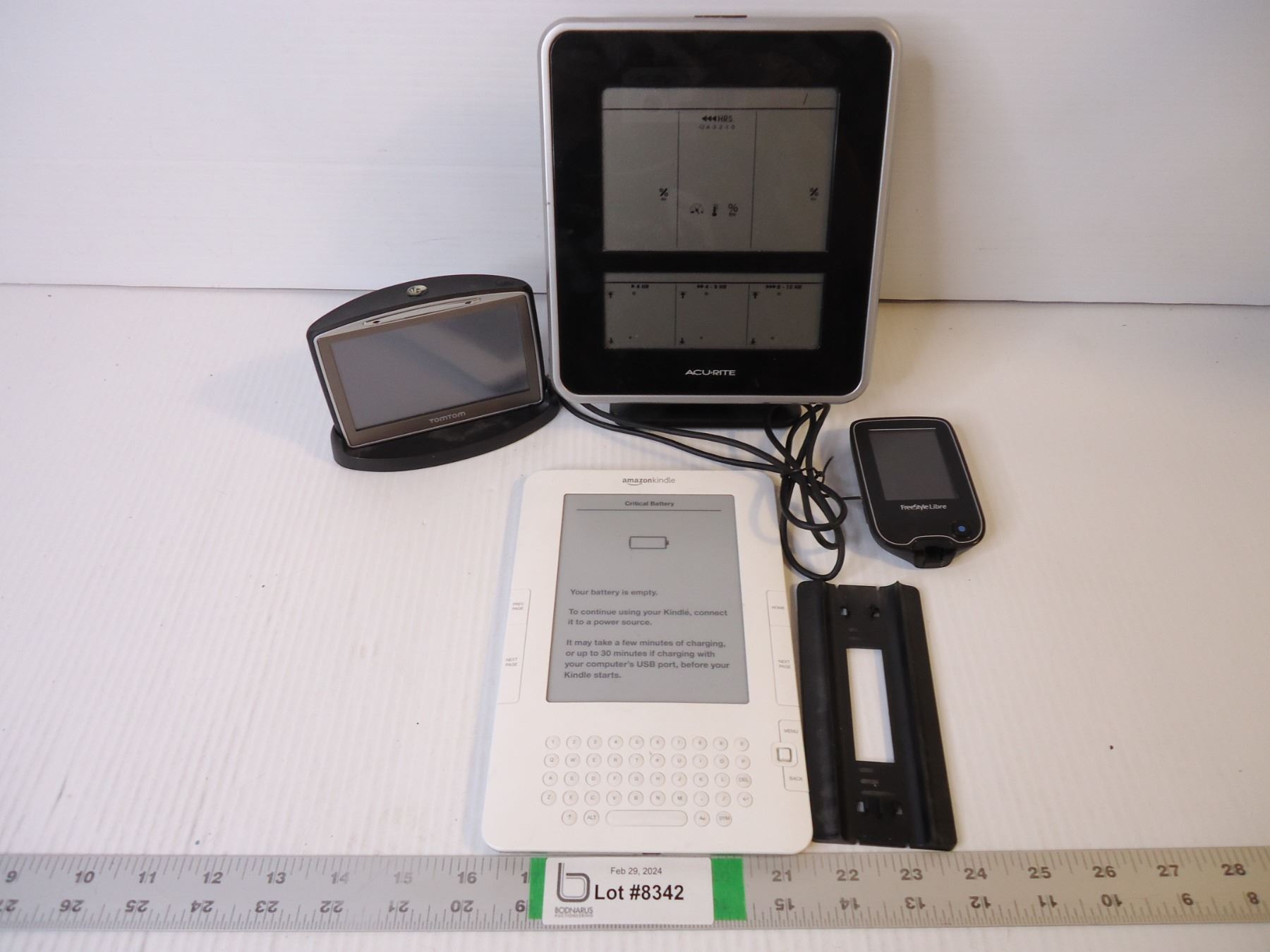 Kindle E-Reader, Weather Station, TomTom GPS and Blood Pressure Monitor-most are missing cords and all are untested