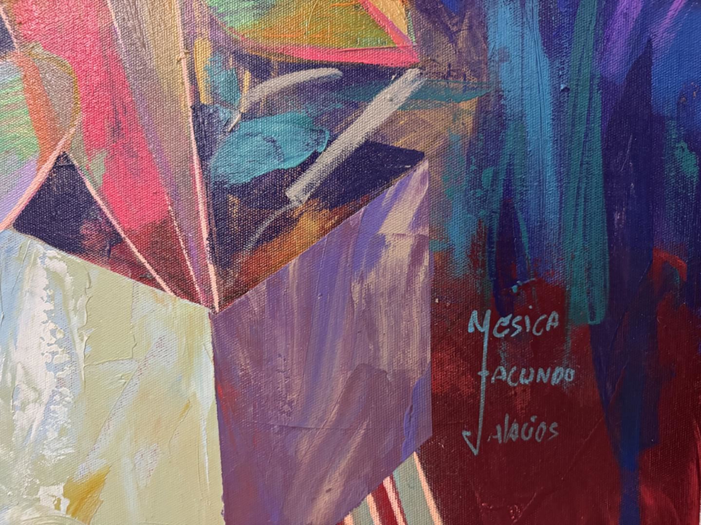 Bright & fun original acrylic on 79x48" canvas, hand signed by Palacios. This artwork comes rolled in a tube for easy shipping