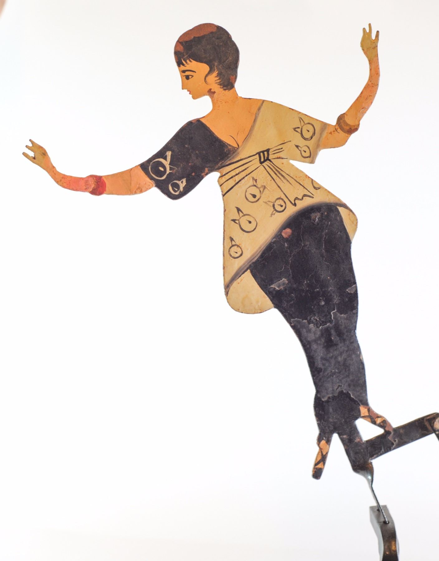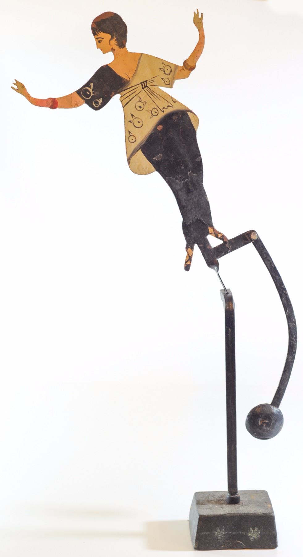 Kinetic motion dancer ornament, mounted on iron base, hand-painted, height: 62 cm.