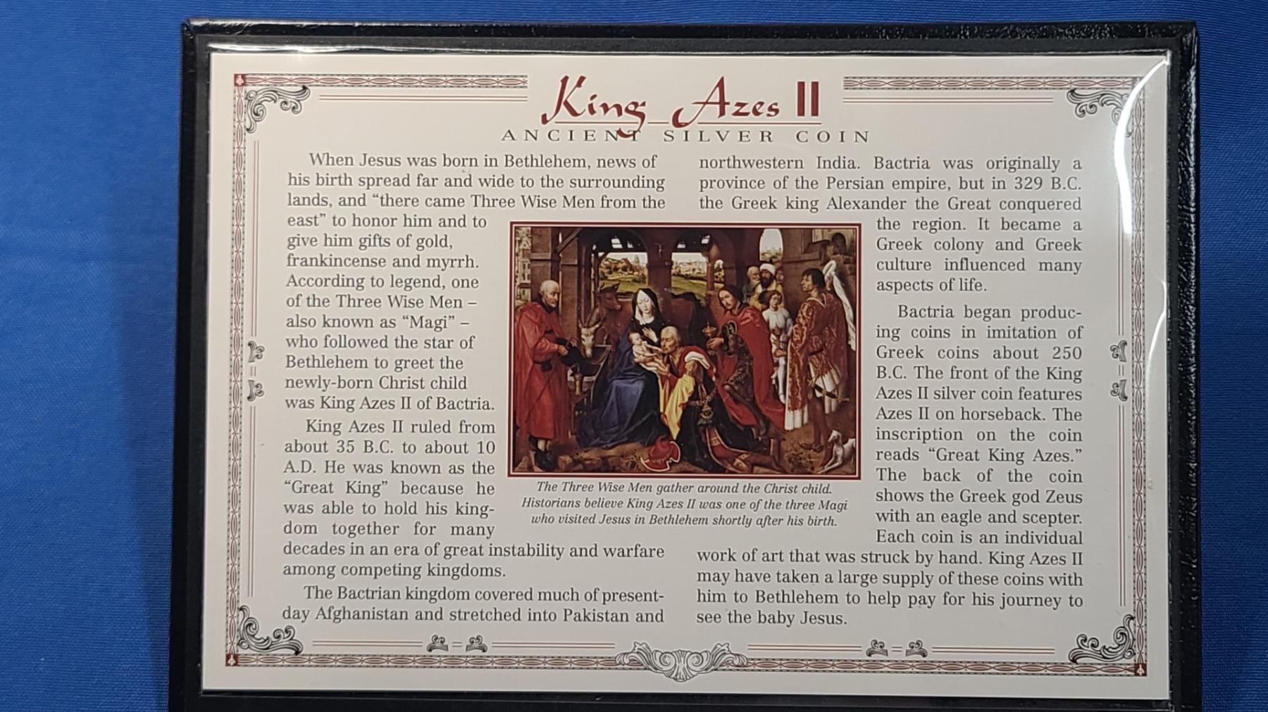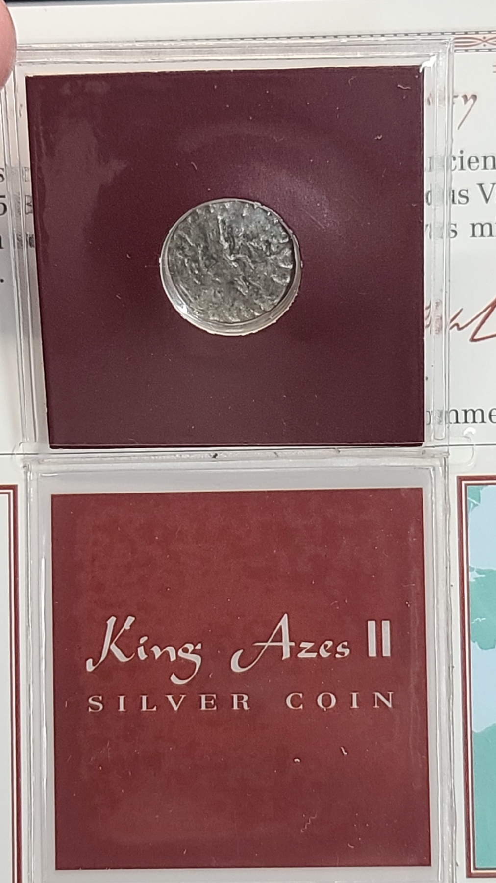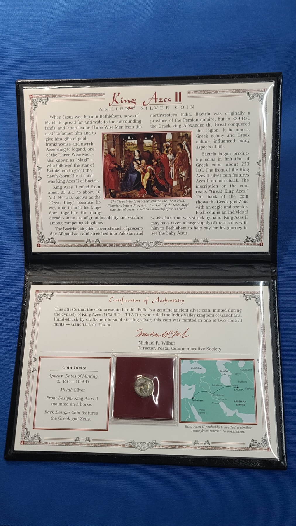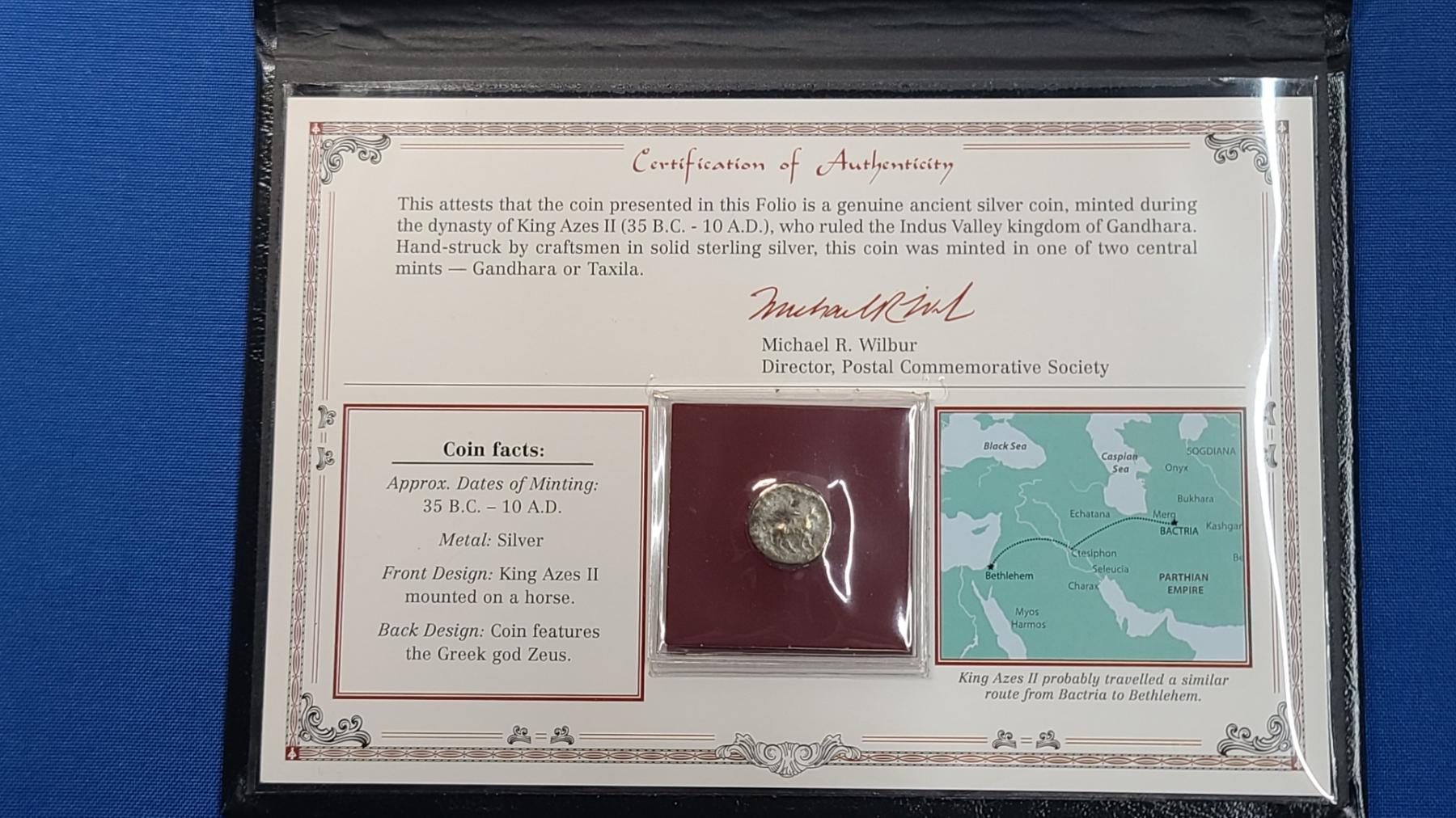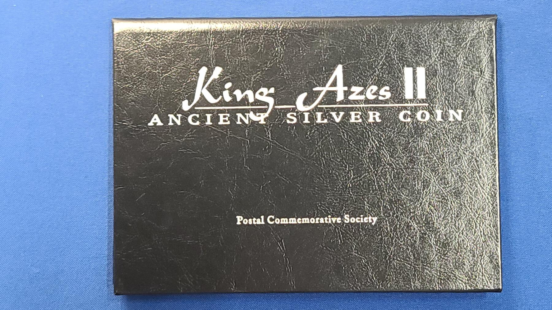 King Azes II Ancient Solid Sterling Silver Coin In Postal Commemorative Society Display