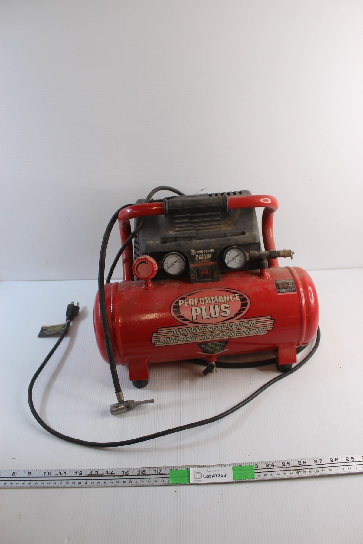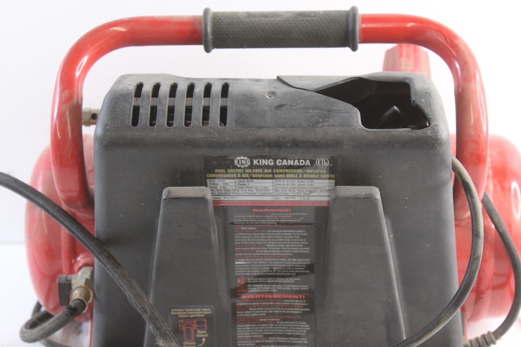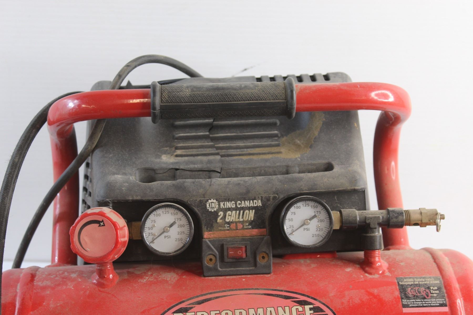 King Canada 2 Gallon Dual Output 110 PSI Performance Plus Air Compressor - Tested, Damaged Air Hose