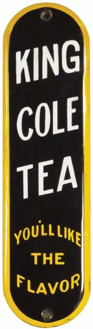 King Cole Tea Porcelain Door Push. Professionally restored. 3 X 11 inches.
