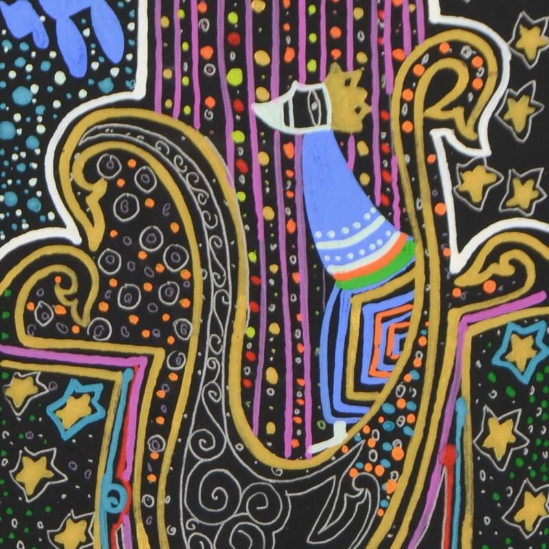 "King David II" is an original painting, gouache on board, by Raphael Abecassis. Hand signed by the artist, this piece comes framed and with a certificate of authenticity. Measures approx. 11" x 5" x 0".