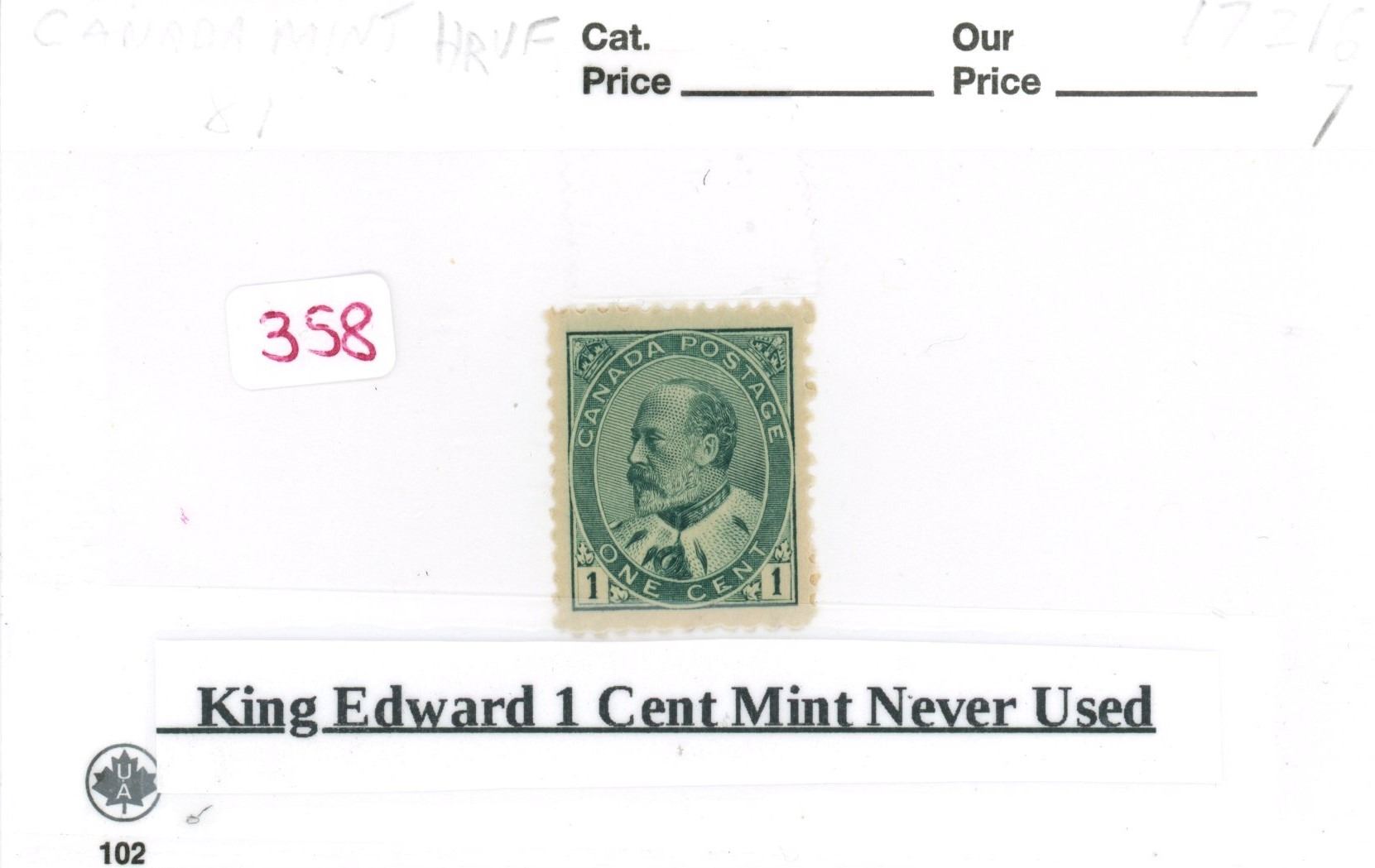 King Edward 1 cents mint never used