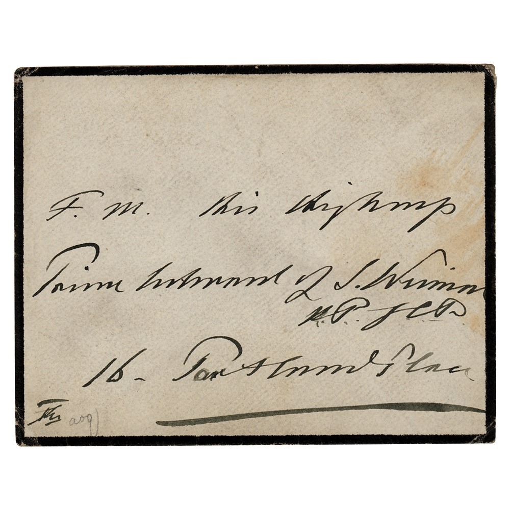 ALS signed “Albert Edward,” on both sides of a 5 x 4 black-bordered Marlborough House stationery card, no date. Brief handwritten letter to Prince Edward of Saxe Weimar, in part: "Will you dine with me at Marlborough Club at 8 tonight." In fine condition. Accompanied by the original transmittal envelope, addressed in his own hand.