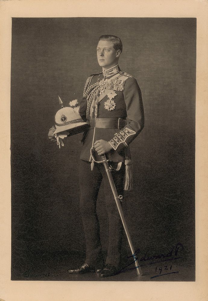 King of England from January to December 1936, at which time he abdicated the throne to marry American divorcée Wallis Warfield Simpson. Original 4.5 x 6.5 cabinet photo by F. A. Swaine of London, signed in blue ink, “Edward P., 1921.” Light crazing to the finish, poor contrast to the signature, and lightly trimmed edges, otherwise fine condition.