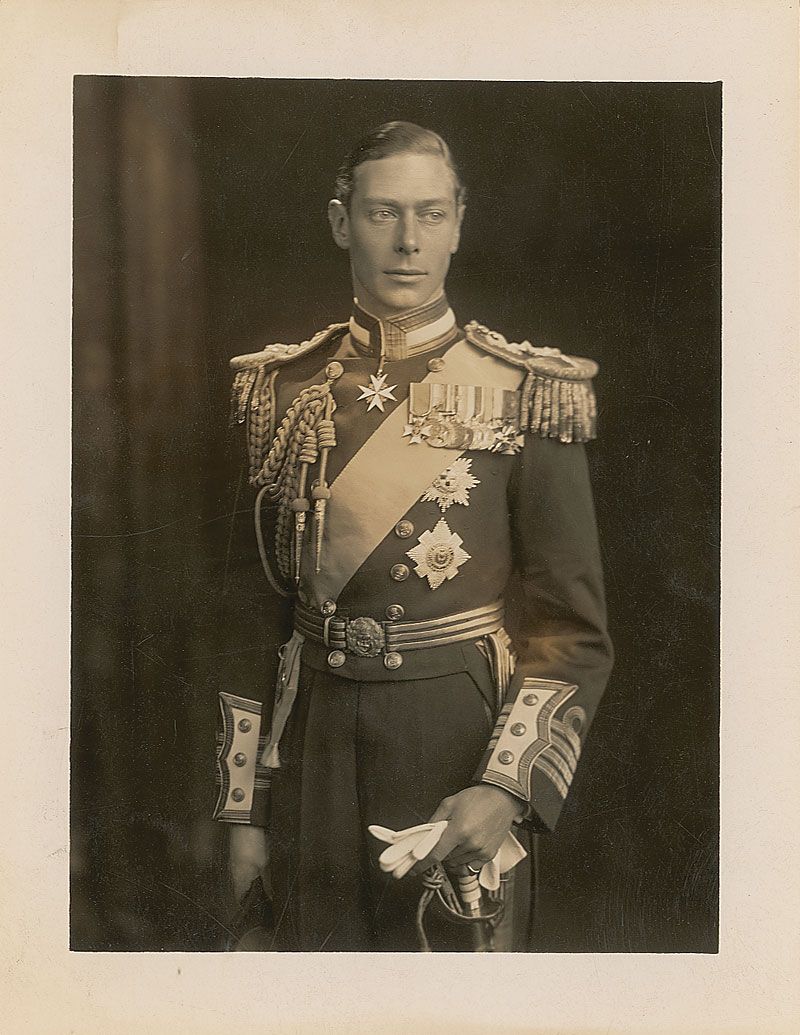 King of England from January to December 1936, at which time he abdicated the throne to marry American divorcée Wallis Warfield Simpson. Original 6.5 x 8.5 silver gelatin portrait of Edward in full dress uniform as the Duke of York, by Vandyk of London. Caption affixed to reverse reads, “An unpublished portrait of His Royal Highness (in R.N. Uniform) who leaves for Australia next week.” Some light bends and creases, scattered light surface marks, and silvering to darker areas of background, visible only at an angle, otherwise fine condition.
