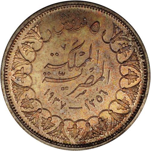 King Farouk Royal Mint Silver Proof Set 1937, KM365 2 P King Farouk Royal Mint Silver Proof Set 1937