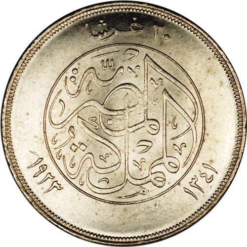 King Fuad 20 Piastres 1923, KM338, choice brilliant UNC King Fuad 20 Piastres 1923,