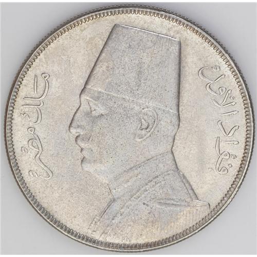 <B>King Fuad 20 Piastres 1929BP, </B></I>KM352, nice UNC, light toning over fully lustrous surfaces, scarce date.
