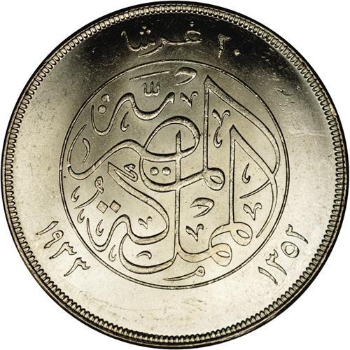 King Fuad 20 Piastres 1933, KM352, choice brilliant UNC King Fuad 20 Piastres 1933,
