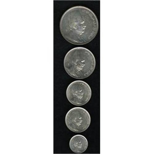 <B>King Fuad Choice Silver Selection, </B></I>KM335 2 Piastres 1923H, lustrous UNC, small reverse toning spot, KM336 5 Piastres 1923H, two pieces, choice AU and UNC, KM337 10 Piastres 1923H, lightly dipped AU, and KM338 20 Piastres 1923H, lustrous XF-AU, very lightly cleaned. <B>Sold as is, no return lot.</B></I>