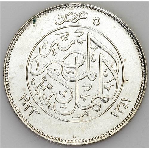 King Fuad Specimen 5 Piastres 1923H, KM336, prooflike b King Fuad Specimen Quality 5 and 10 Piastres