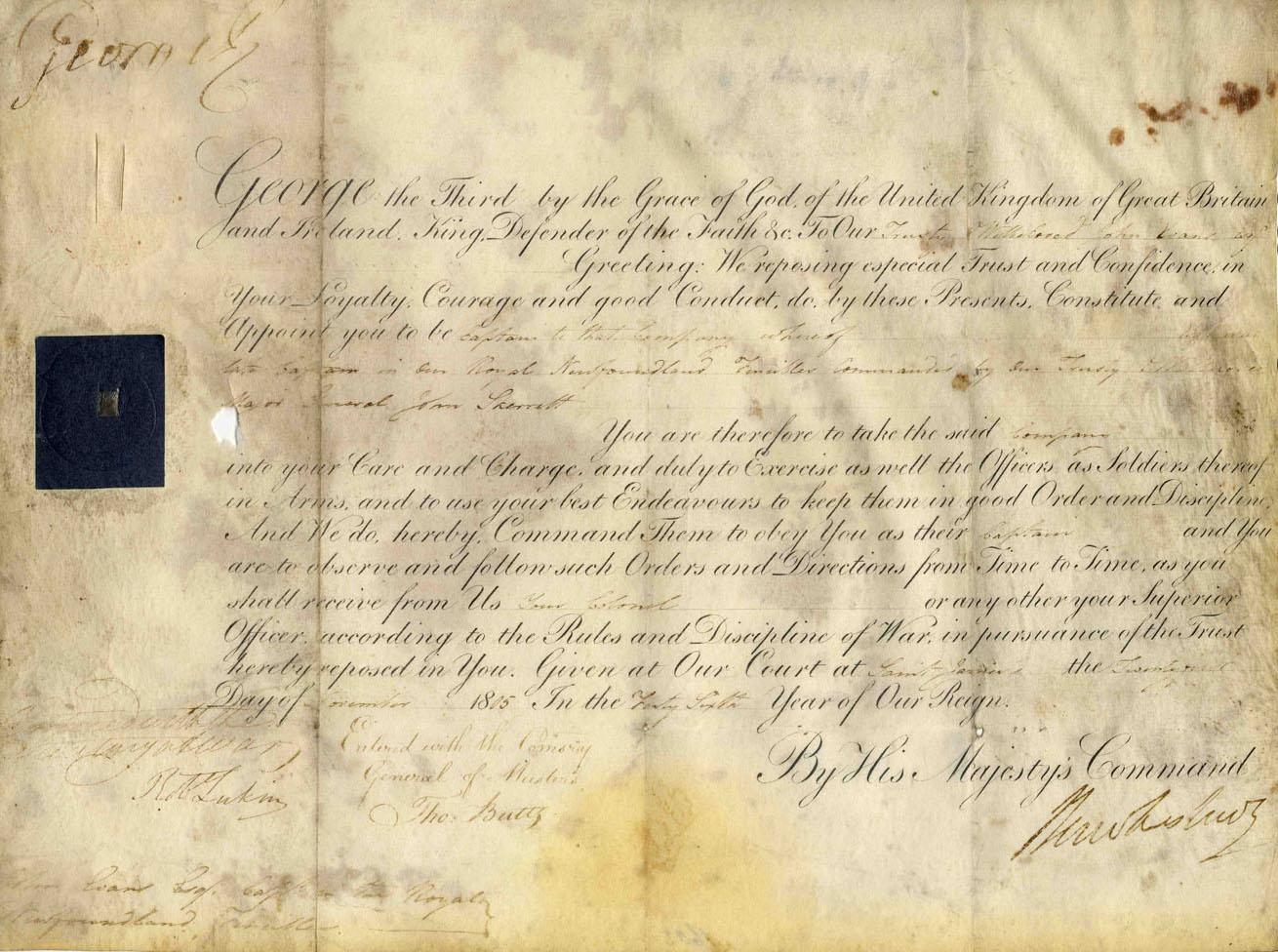 King George III DS -- 1805 Ship Captain's Appointment Signed as King -- 16" x 11.75" -- Trimmed, Small Hole