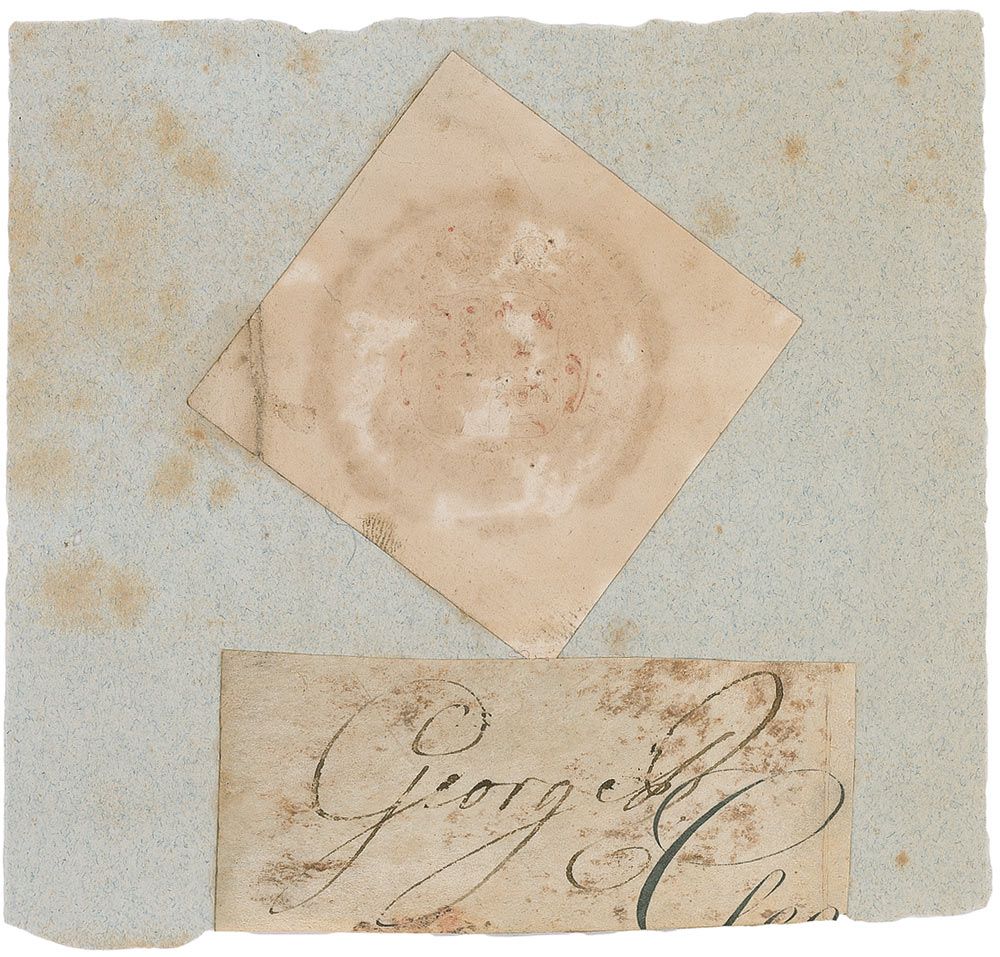 King of Great Britain and Ireland from 1760 until his death in 1820. His reign was marked most notably by the loss of British control over the American colonies. Advancing mental illness rendered George unable to fulfill his official duties during the last decade of his life, during which time the Prince Regent, William IV, ruled in his stead. Ink signature, “George R,” on an off-white 3.5 x 1.5 slip, affixed to a 5.5 x 5.25 light blue slip, along with an affixed embossed seal. In very good condition, with scattered toning and soiling, show-through from adhesive on reverse, some light curling, and a couple letters of beginning of document to lower right.