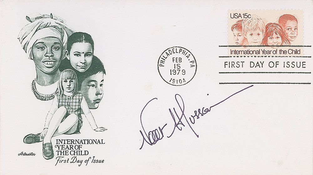 Two FDCs with cachets honoring the International Year of the Child, individually signed in black ink by King Hussein and Queen Noor. In overall fine condition.