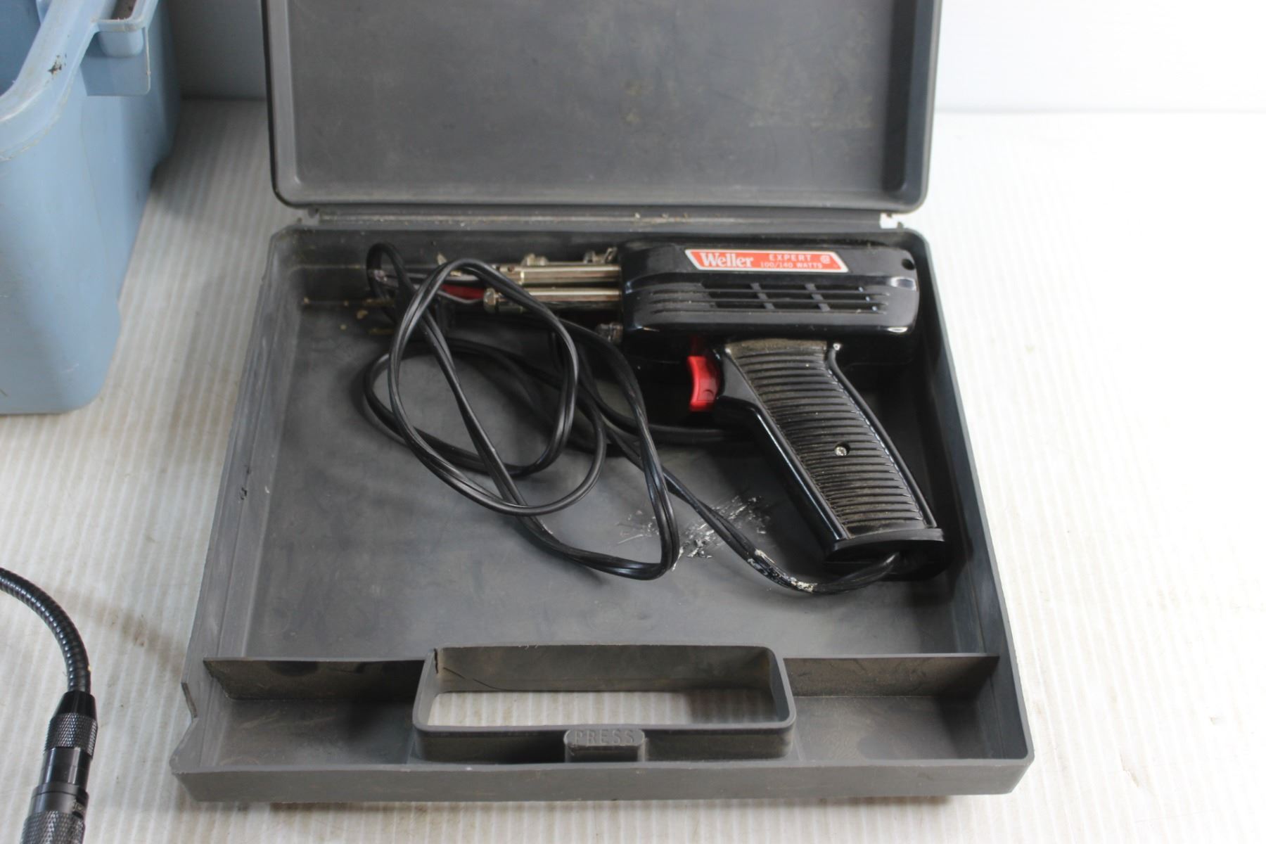 King Inspection Camera with LCD Monitor - Tested, Small Plastic Tote and Weller Soldering Gun - As Is