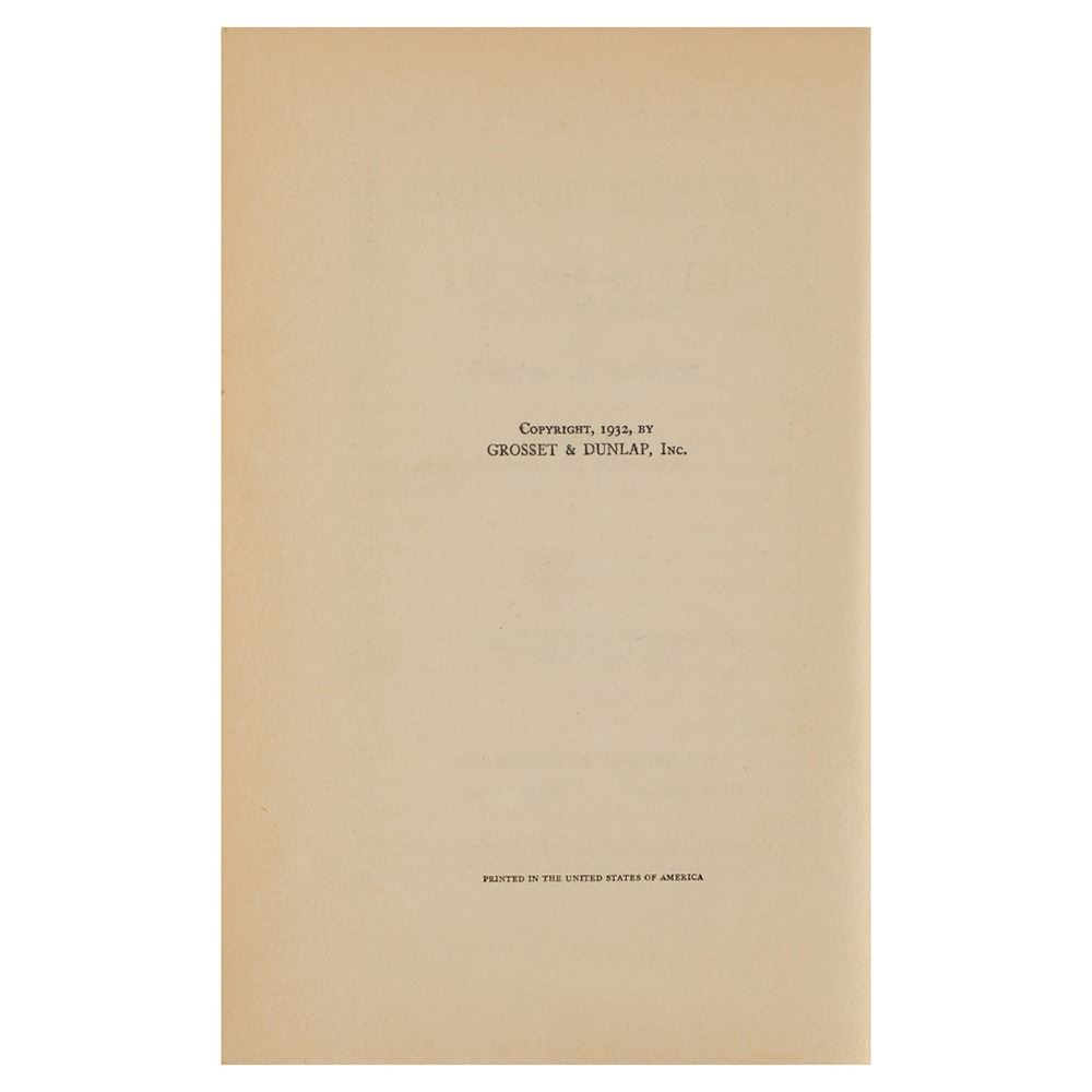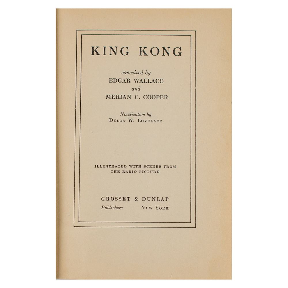 Featuring stills from the classic RKO thriller on the endpapers, Delos W. Lovelace's original novelization of the film King Kong was released by Grosset & Dunlap in 1932 as part of the film's advance marketing. Co-creator Merian Cooper was the key influence in King Kong's development, with noted writer Edgar Wallace lending his well-recognized name to the screenplay; as Wallace passed away early in the creative process, the screenplay was ultimately authored by James Ashmore Creelman and Ruth Rose. This highly sought-after first edition of the classic tale, released just over two months before the film's premiere, represents a landmark achievement in the 'monster thriller' genre of American science fiction.