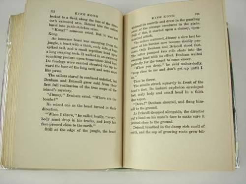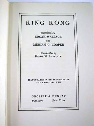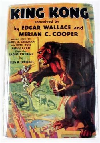 King Kong, conceived by Edgar Wallace and Merian C. Cooper, Novelization by Delos W. Lovelace, illustrated with scenes from The Radio Picture, published by Grosset and Dunlap, New York, 1932, Condition: Very Good, top of pages are black - normal for this issue, With dust jacket in good condition - it does have some tears & rubs (shown under clear cover protector)