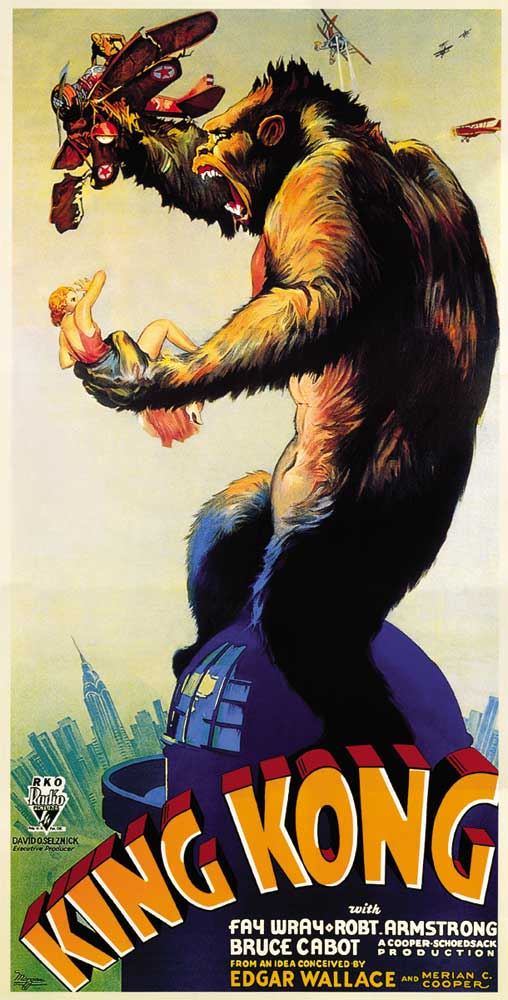 Artist: Unknown - Title: King Kong - Medium: Fine Art Reproduction Giclee on Canvas - Each Image Size: Approximately 20 inches x 10 inches - Framed: Unframed on Unstretched Canvas - Details: This is a beautiful Reproduction Giclee on Archival Canvas. - King Kong is a giant movie monster, resembling a colossal gorilla that has appeared in various media since 1933. The character first appeared in the 1933 film King Kong, which received universal acclaim upon its initial release and re-releases. This original stop-motion animated King Kong in the 1933 film fighting an airplane on top of the Empire State Building. - The film was remade in 1976 and once again in 2005. The character has become one of the world's most famous movie icons, having inspired countless sequels, remakes, spin-offs, imitators, parodies, cartoons, books, comics, video games, theme park rides, and even a stage play. His role in the different narratives varies, ranging from a rampaging monster to a tragic antihero