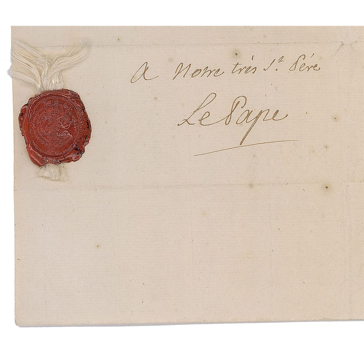 I can not express too strongly my gratitude for the promptitude with which Your Holiness has agreed with my views as to how to reestablish peace in the churches of my Kingdom, by reuniting all the bishops in a perfect conformity of thought and conduct regarding the administration of sacraments. Nothing can concur more effectively to this aim as the respectable authority of the worthy successor of Benedict XIV, of happy memory. My intention is to deploy all the means I will judge advisable to guarantee for Your Holiness’s brief all the most favorable effects we anticipate and I will order my cousin the bishop of Laon, my ambassador to the Holy See, to report to Your Holiness a precise account of the success of the measures I propose. I renew with pleasure my tender esteem for Your Holiness, my entire trust and my filial respect.” Retains two official red wax seals affixed to the reverse of the second integral page. In fine condition, with intersecting folds (one vertical fold passing through a single letter of the signature).