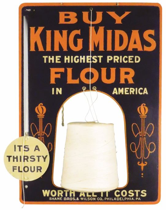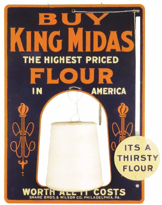 Very Rare King Midas Flour Die Cut Tin String Holder. Restored condition. 15 X 19 3/4 inches.