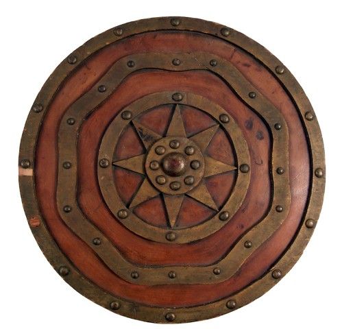 King Of Kings (1927) Screen Used Roman Shield - Cecil B. DeMille began to break his teeth on Biblical extravaganza's with "King of Kings" (1927), the massive mounted silent version of the story of Jesus Christ. It was the most expensive film up to the time (which in today's dollars would make the film cost almost $50,000,000!). This is an extremely rare wood shield with special iconic "star-burst" design, and the original straps on the back used by one of the Roman soldiers as they abduct Jesus in this epic masterpiece. (approx. 20 1/2" diameter).