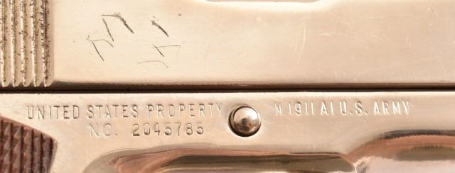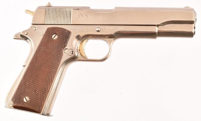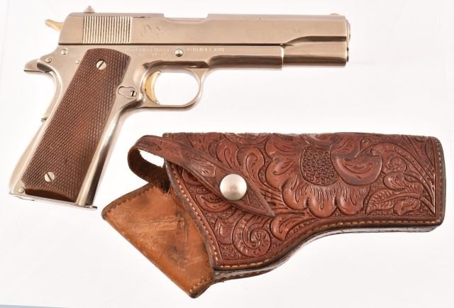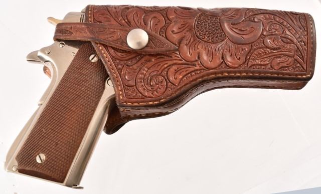 * Remington Rand Nickel plated, WWII manufactured in 1944. Three owners have been King Ranch employees John Roberts, Chet Downs, Leonard Stiles. With tooled Chet Downs King Ranch holster.