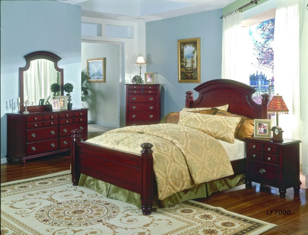 King Size Bedroom Set Including Bed, Dresser, Mirror, Highboy & Night Table