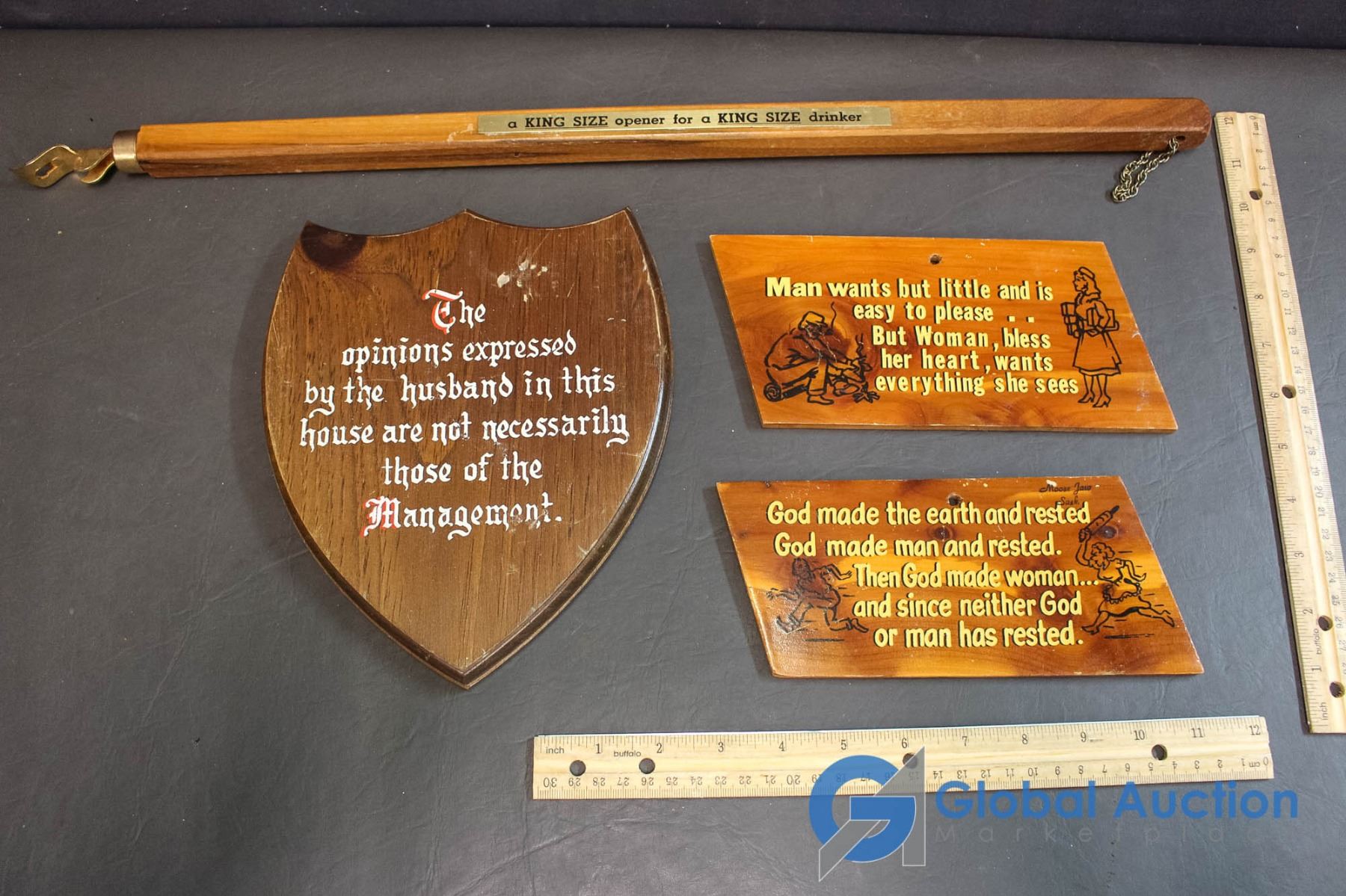 King Sized Bottle Opener and 3 Vintage Humor Plaques