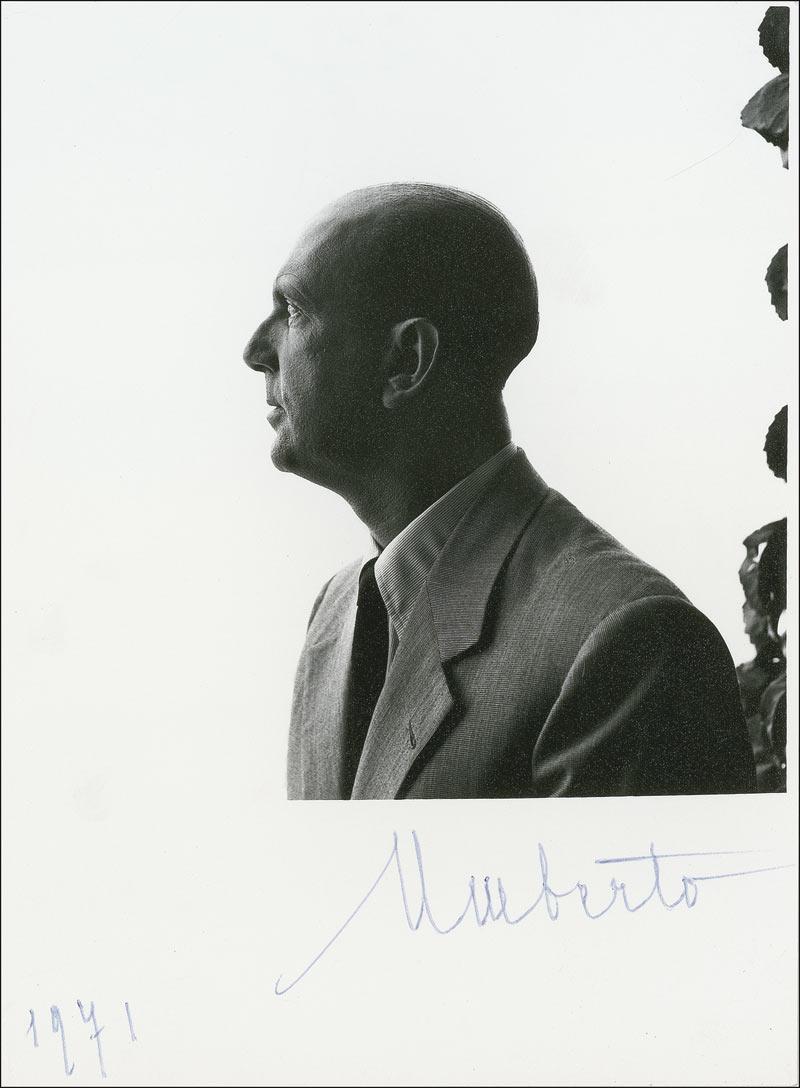 Last King of Italy (1904–1983) who spent the last 37 years of his life in exile. Matte-finish 6.75 x 9.25 photo of Umberto in profile, signed in the lower border in blue ink, “Umberto 1971.” In fine condition, with light creasing to two corner tips.