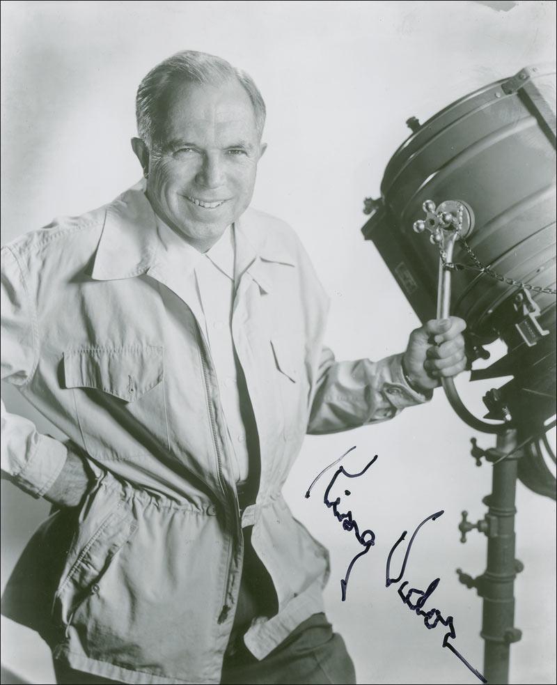 Durable Hungarian-born director (1894–1982) of such classics as Duel in the Sun, The Fountainhead, and War and Peace. Glossy 7.5 x 9 photo, signed in black felt tip. In fine condition, with lightly trimmed edges.