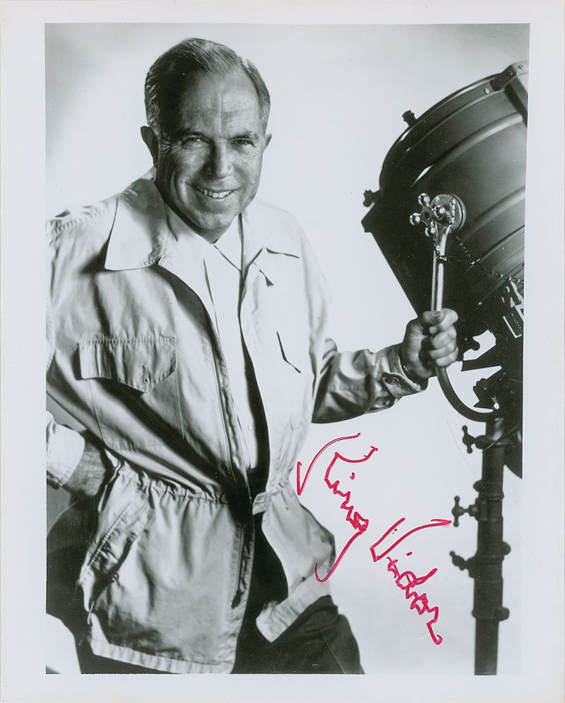 Pearl-finish 8 x 10 photo of the smiling director, boldly signed in red felt tip. In fine condition, with slight rippling to horizontal edges.