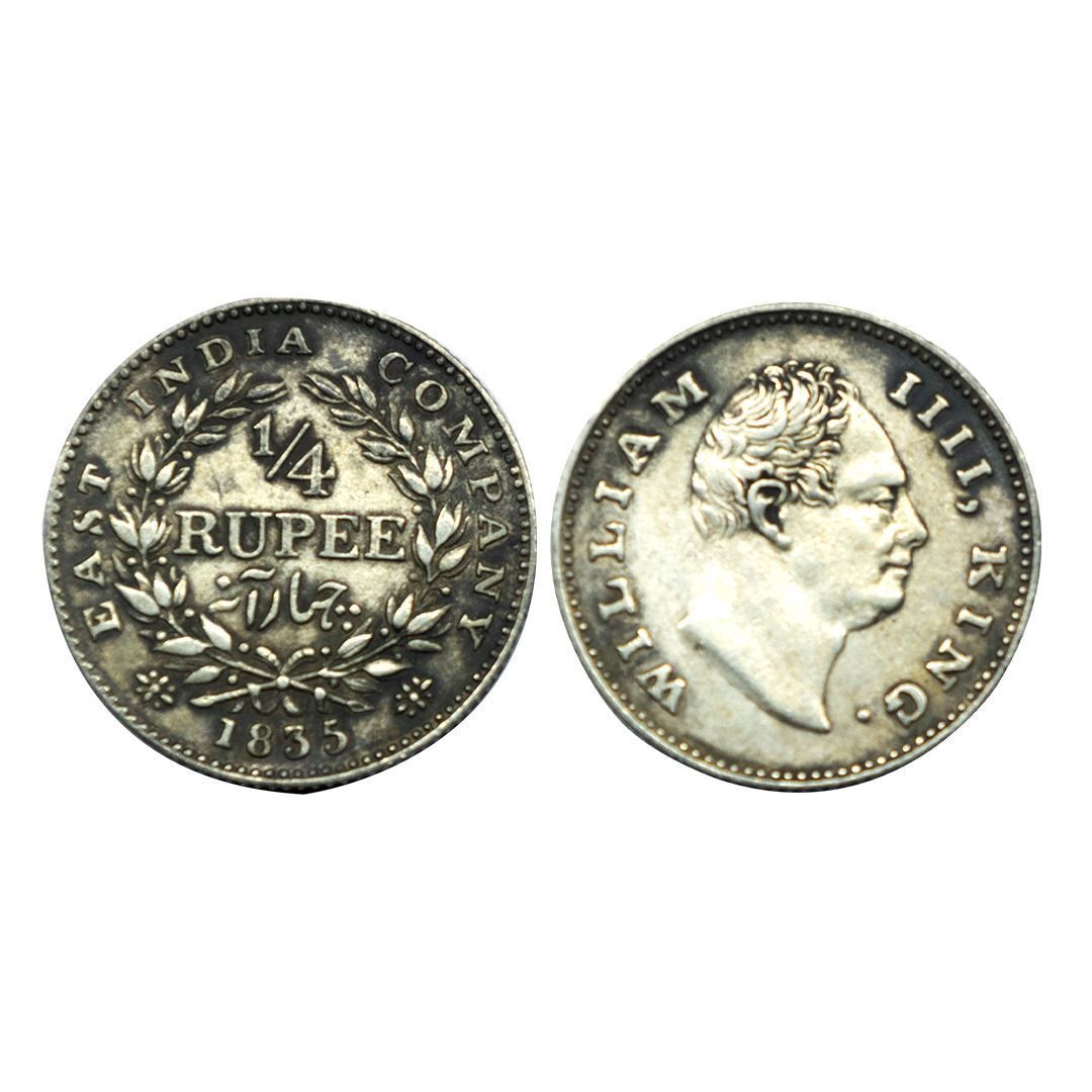 King William IIII, Silver 1/4 Rupee, 1835, "F" inc, Extremely Fine.