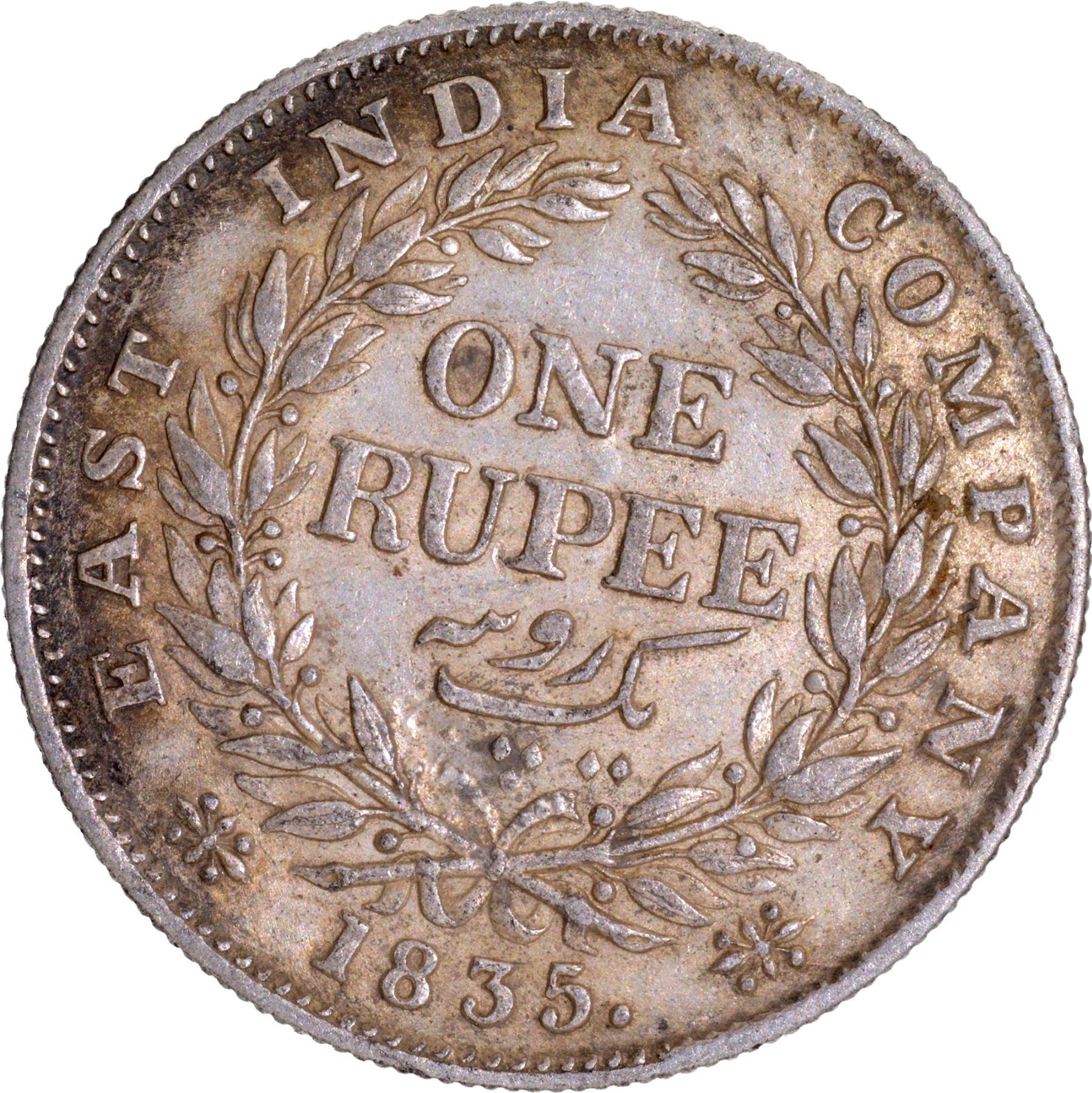 1835, King William IIII, Silver Rupee, Calcutta Mint, F raised, 19 berries (10L+9R), A/I, one diamond is missing in above ribbon, die rotation around 1’o clock, (PR # 37/GK # 30), about extremely fine.