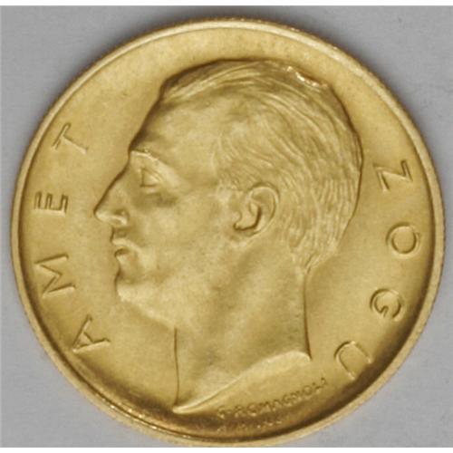 <B>King Zog I gold 10 Franga Ari 1927R,</B></I> KM9, Fr-3, Choice BU with full luster and only a few light marks.