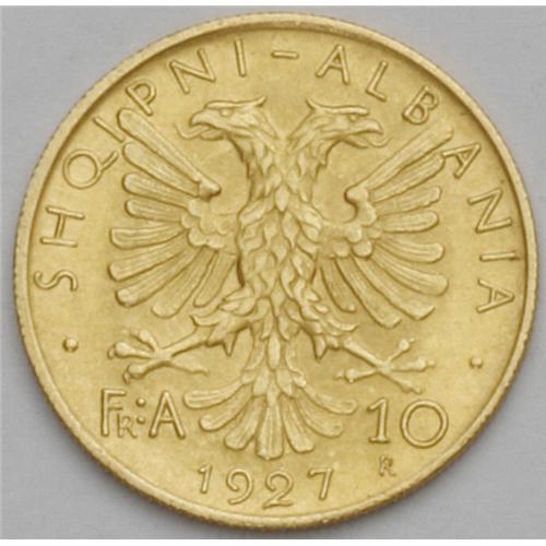 King Zog I gold 10 Franga Ari 1927R, KM9, Fr-3, Choice King Zog I gold 10 Franga Ari 1927R,