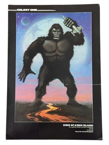 King of Kong Island (Gold Key Entertainment, 1968). Window card printed on cardstock paper. Starring: Brad Harris and Marc Lawrence. The poster comes inside a plastic sleeve. There are fold lines, creases and edge wear damage. Very Fine.(11" X 16").