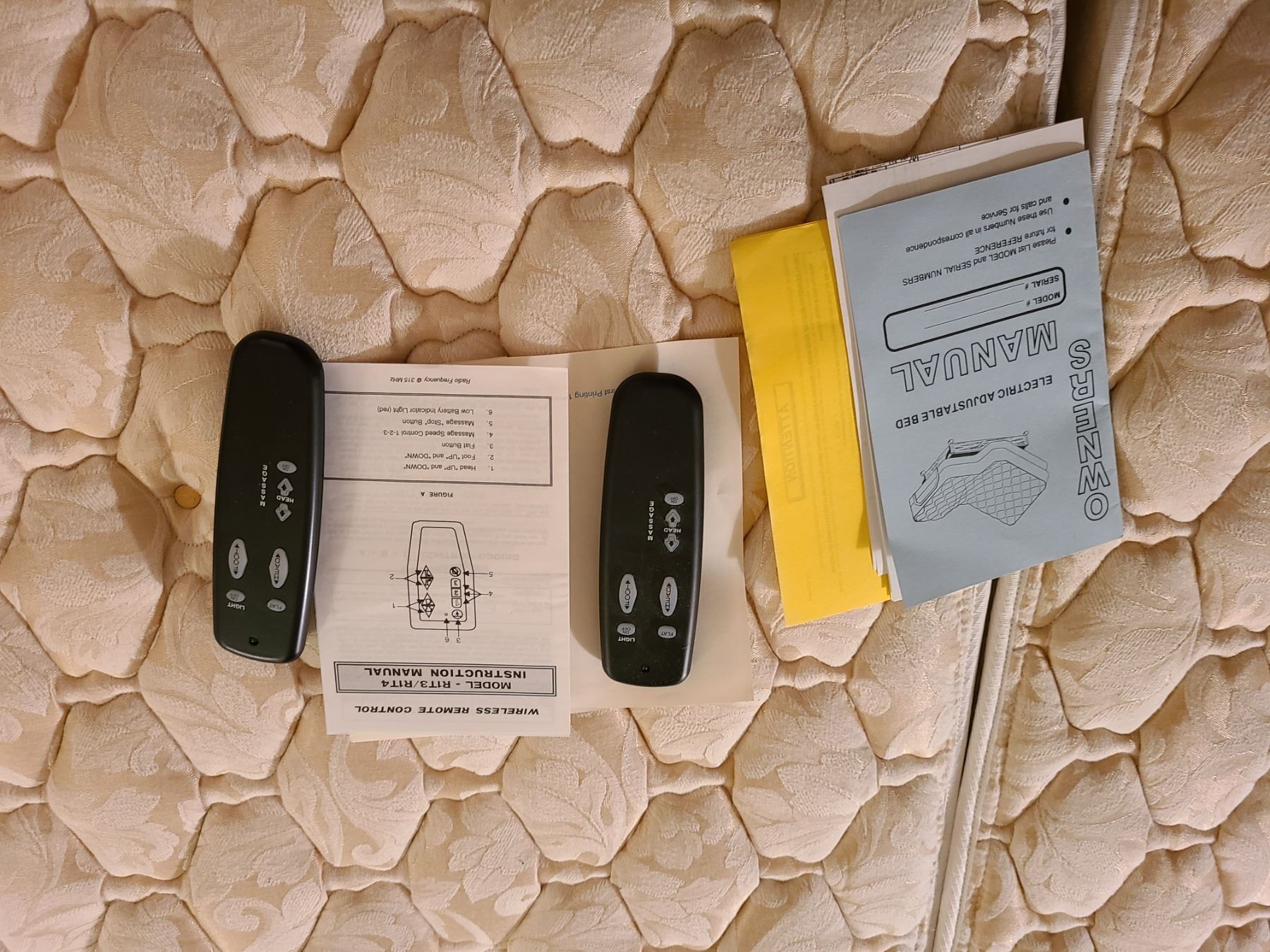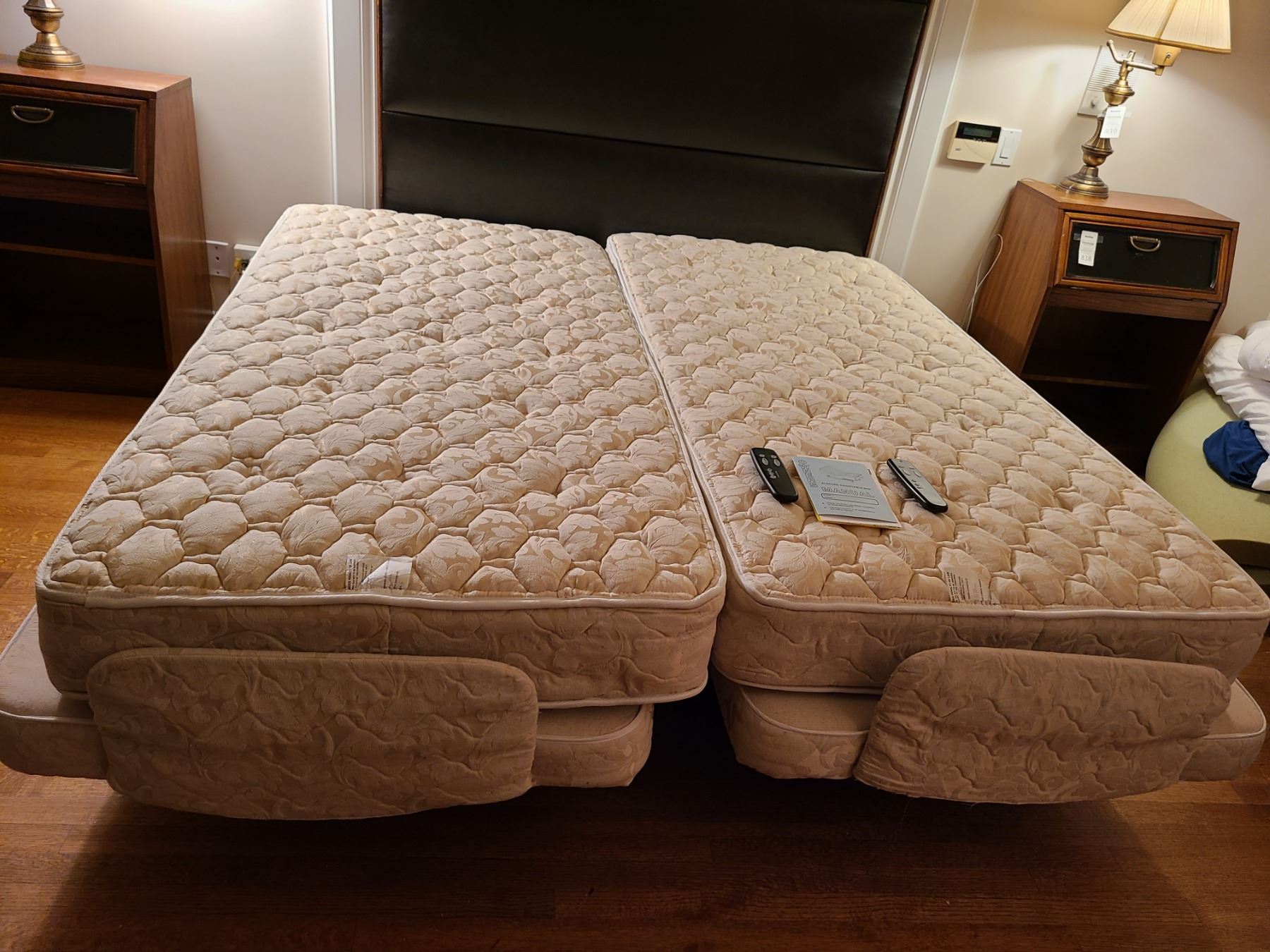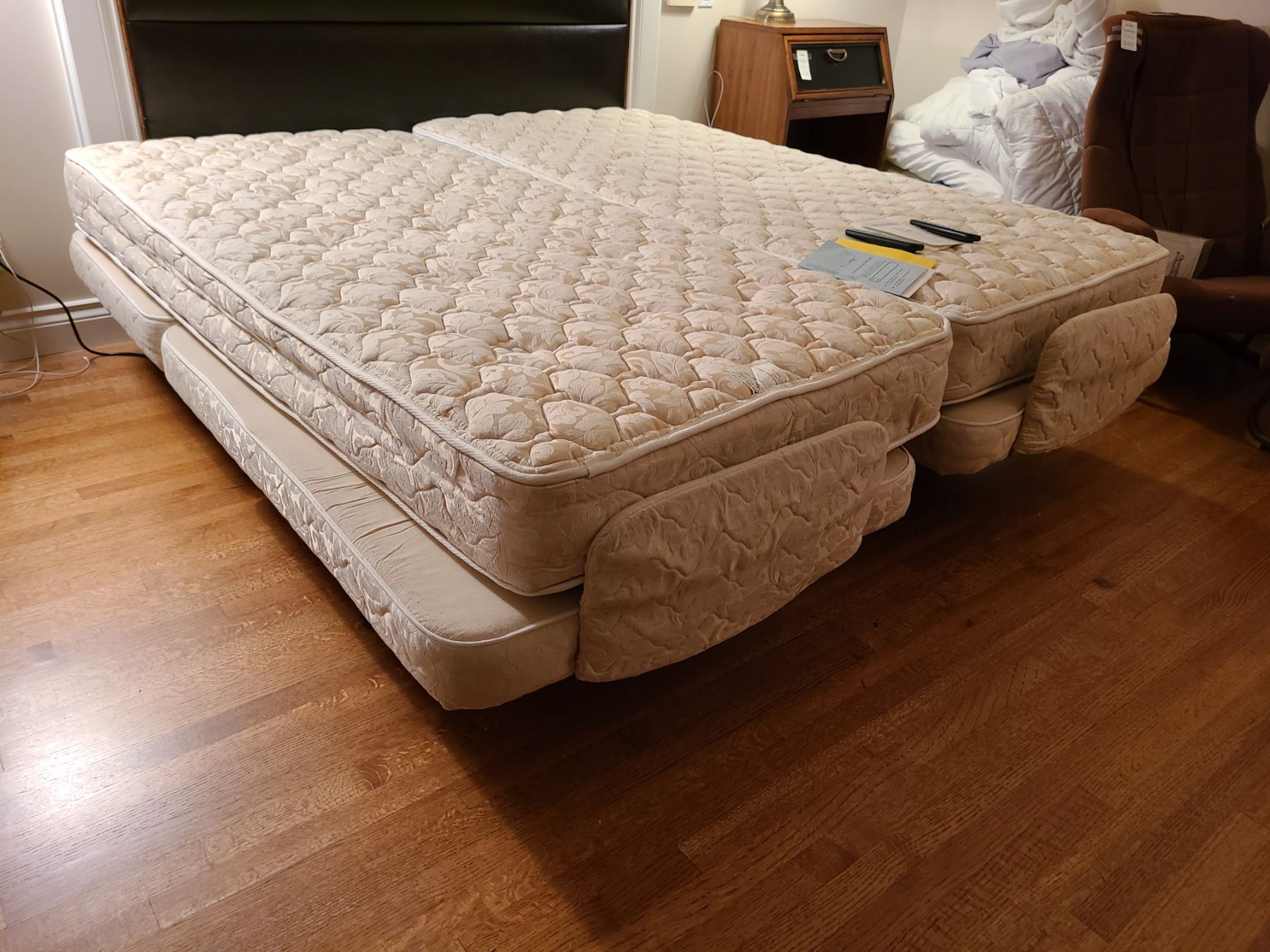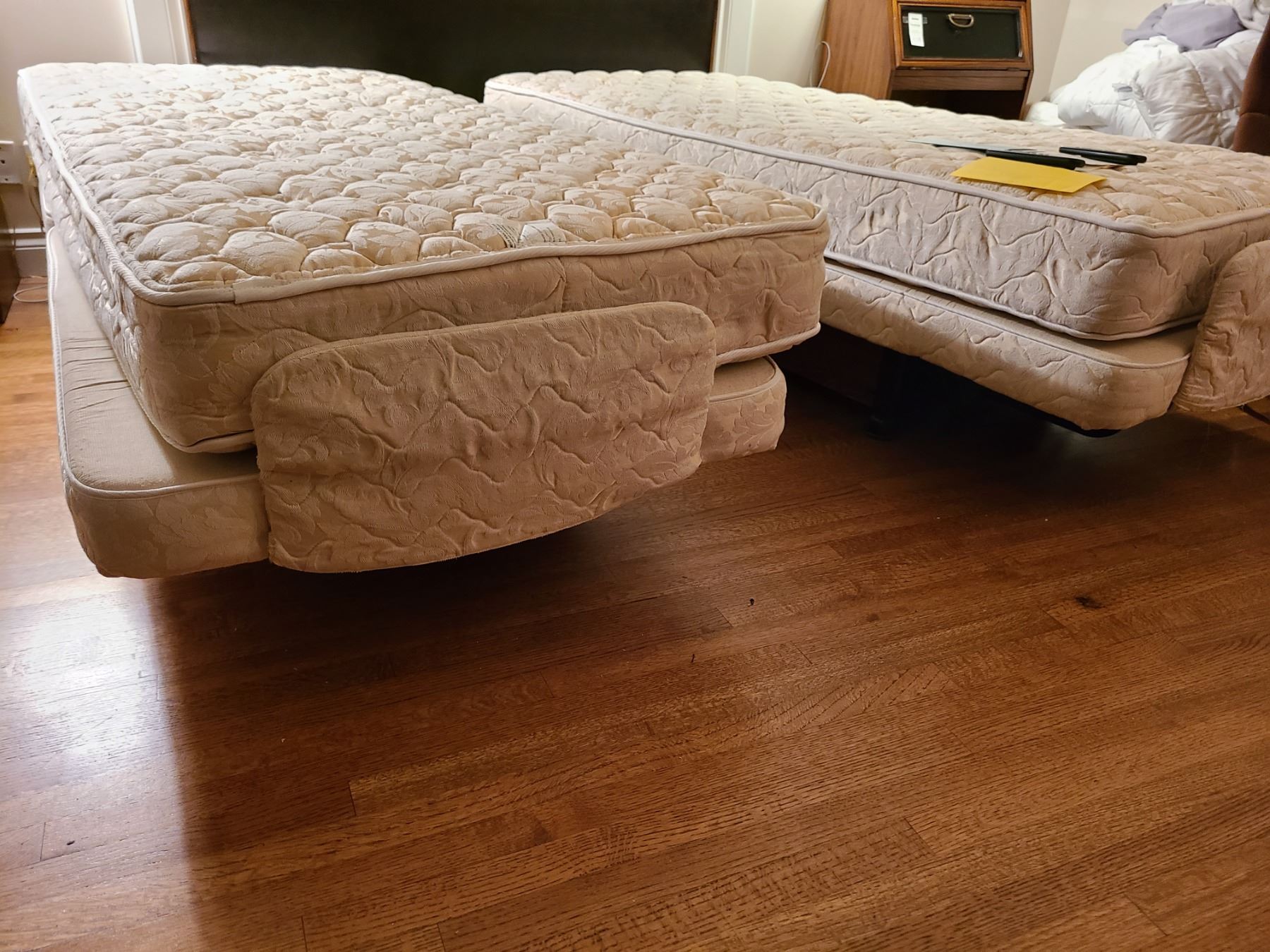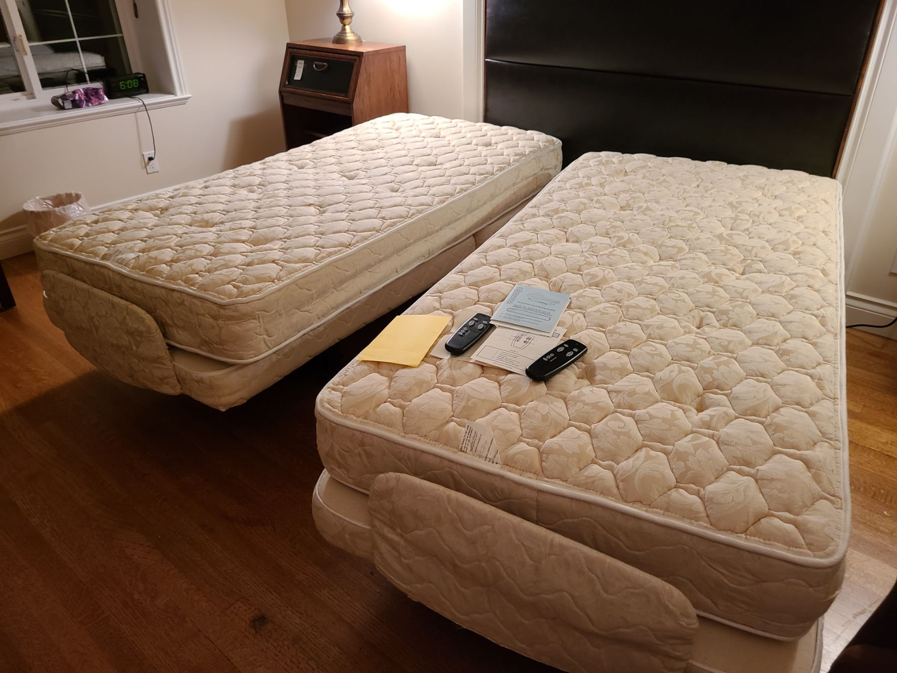 2 x twin size beds, Mattresses Box Springs have 2 separate motors & form a king size 38X80X24 each vibrating and 2 remotes. Heavy bring help. Pickup at 11 am