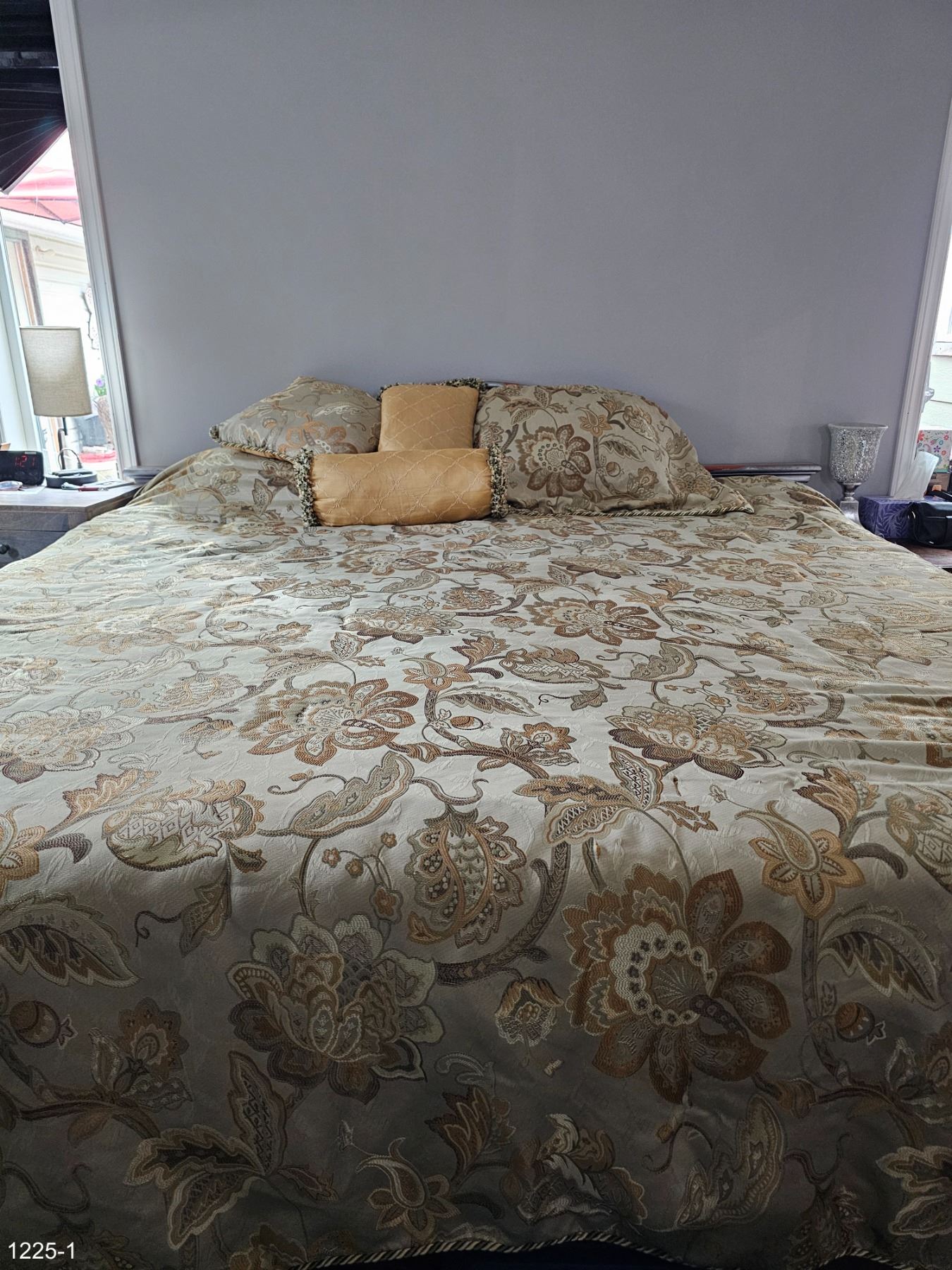 King size Bed Set. Large Comforter one pillow case and three throw pillows