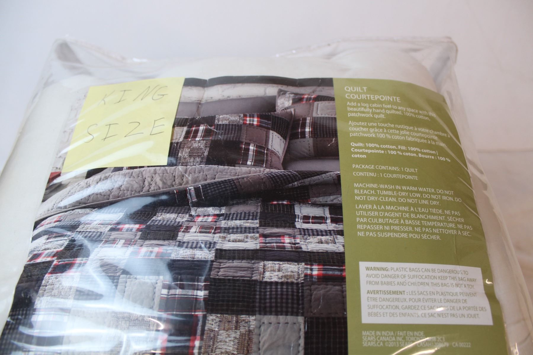 King size quilt in bag
