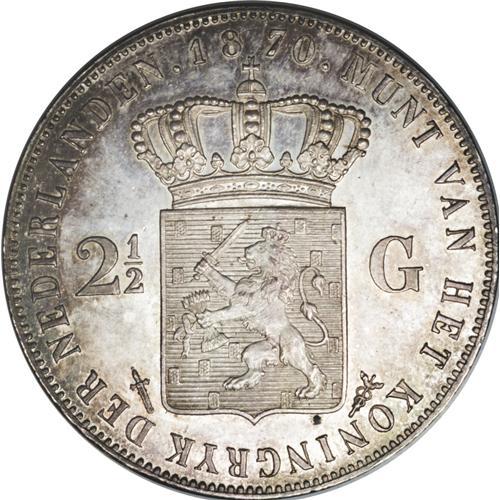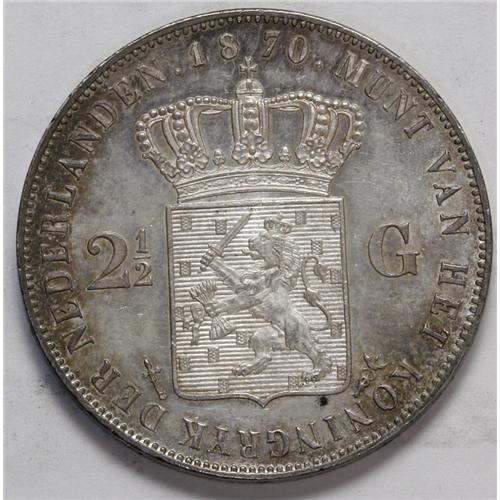 Kingdom. Willem III 2 1/2 Gulden 1870, KM82, choice UNC